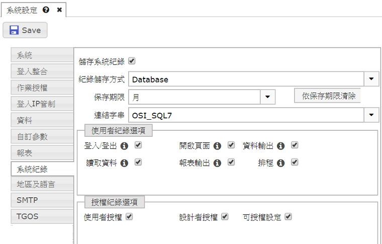授權紀錄選項:可自行選擇要記錄的項目,記錄至SEV_Auth_Logs資料表。