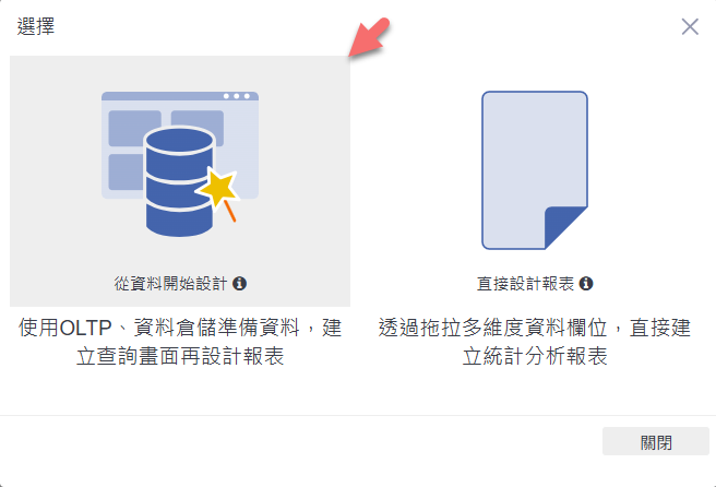 在出現的設計選擇畫面中,點選左側「從資料開始設計」。
