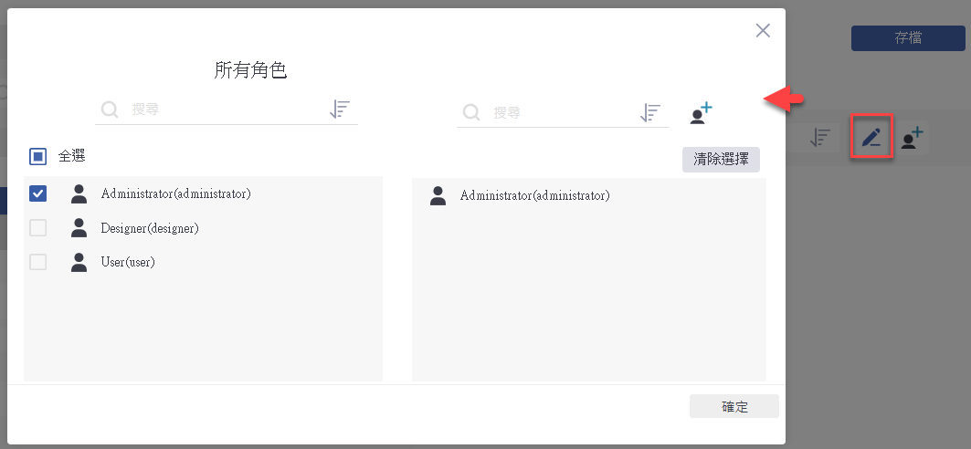 在清單中,您可以透過勾選的方式,選取多個使用者,完成選擇後,點擊右下角的「確定」,即可將所選使用者加入使用者清單。