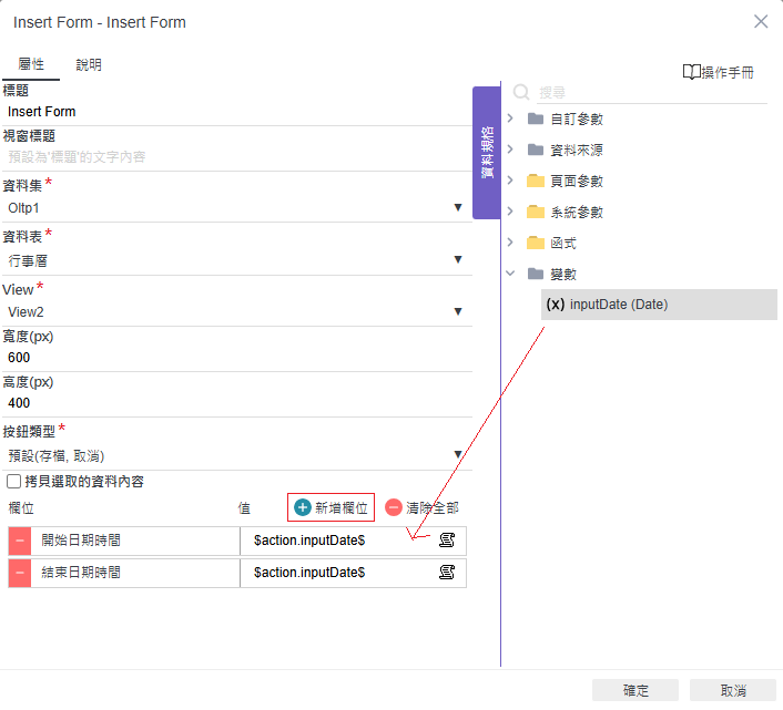 當點選【新增行事曆分類】按鈕後,系統會開啟「新增行事曆分類名稱」的彈跳視窗。 在此畫面中,請於「行事曆分類」欄位輸入分類名稱(如:台灣),輸入完成後點選【確定】即可儲存;若不需新增可點選【取消】關閉視窗。