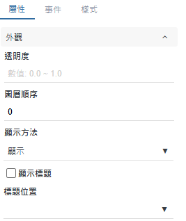 外觀主要是用來設控制項 透明度、圖層順序、顯示方法及顯示標題(條件)的方式。