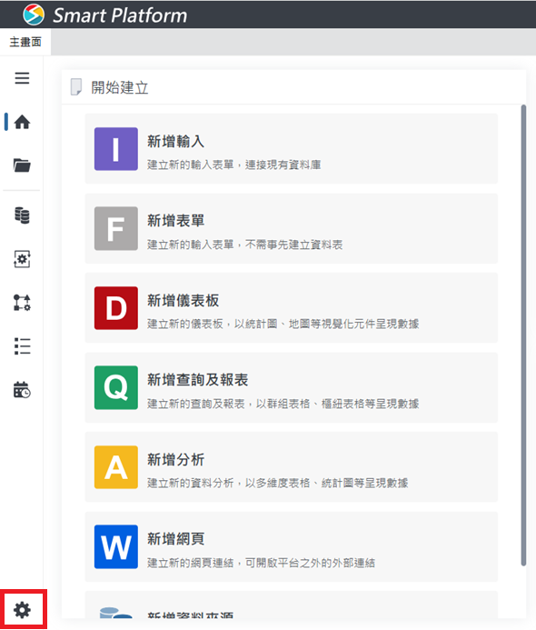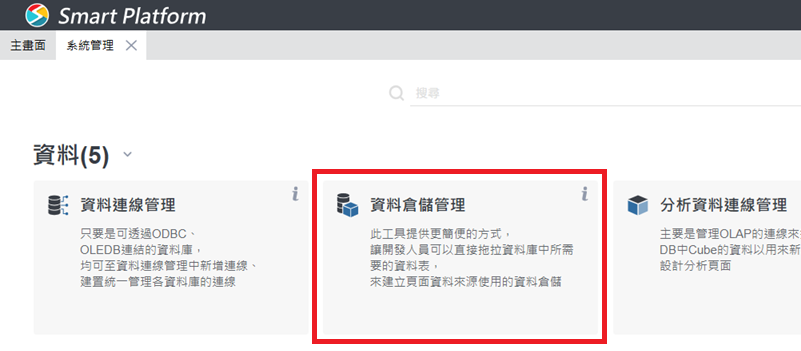 點選左下角的齒輪進入到系統管理,點選「資料倉儲管理」。