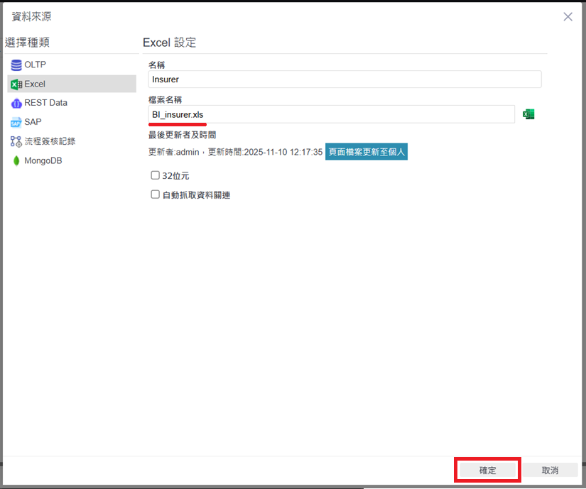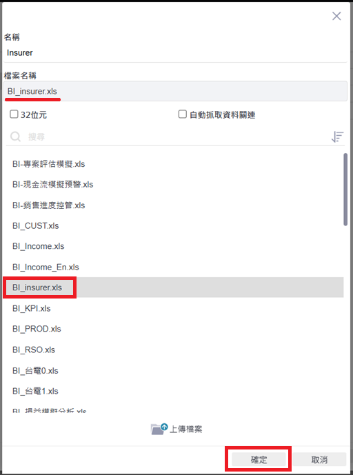 此處的清單為Server上的Excel檔案,可以從中選取;若無所需的檔案也可以自行上傳。