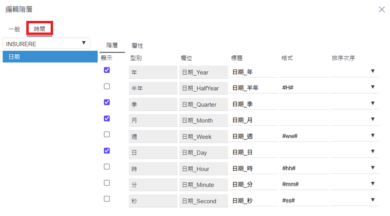 切換到時間、屬性的頁面,可調整顯示的時間類型,也確保系統之後能細分成這些欄位並讀入。