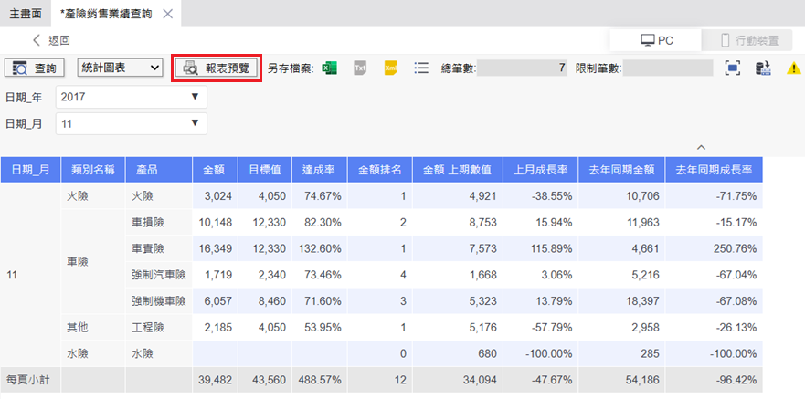 可以調整想查詢的年月,最後按下「報表預覽」,會開啟一個新頁面,表格在上、圖表在下。