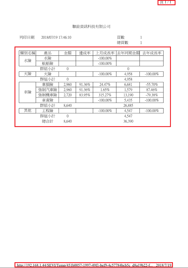 1.以 「群組報表」為範例,測試兩種情況,有使用印表元件及未使用印表元件兩者的差別,測試瀏覽器為IE。