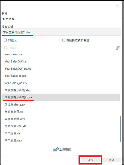 點選「上傳檔案」,確認選取的是「來台旅客分析表2」後按確定。