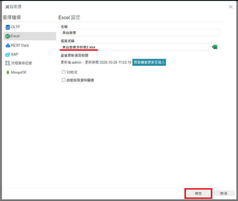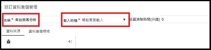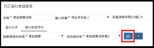 切換到「資料倉儲規格」,確認資料來源為「來台旅客」、目的資料表為「來台旅客分析表2」;
