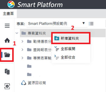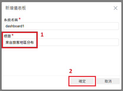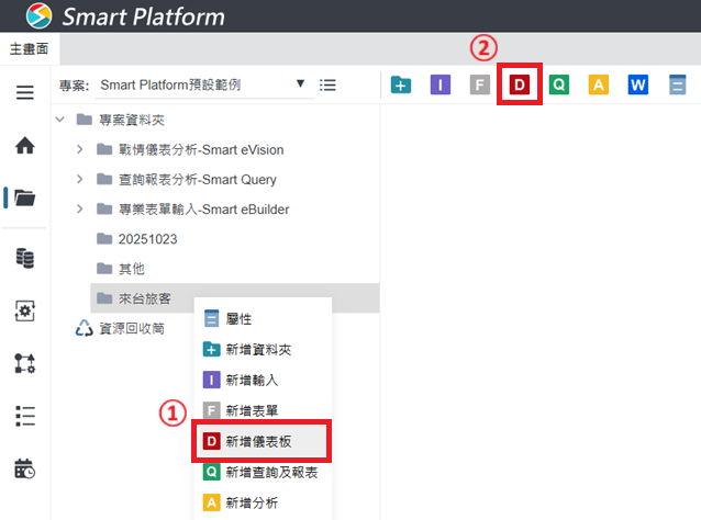 ① 在該資料夾上右鍵點選「新增儀表板」 或 ② 點選資料夾後選擇上方的「新增儀表板」圖示,