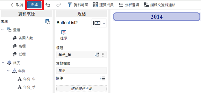 將「年份_年」的維度欄位拖拉至「標題」的欄位中。
