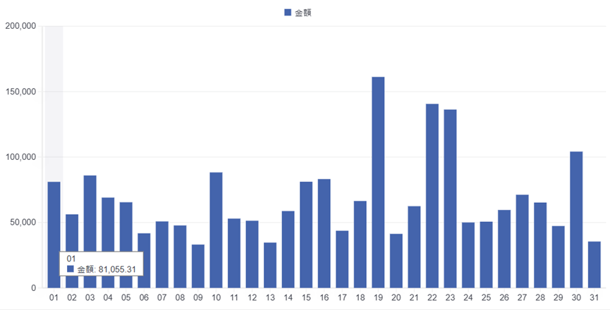 圖表完成的效果如下,可看出每日的銷售金額高低比較。