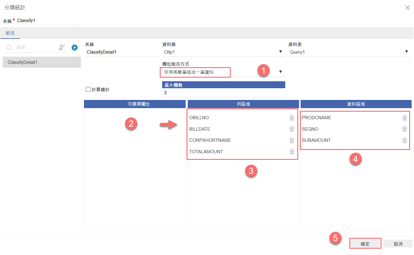 設定完成後,點選「確定」,完成分類統計欄位配置。