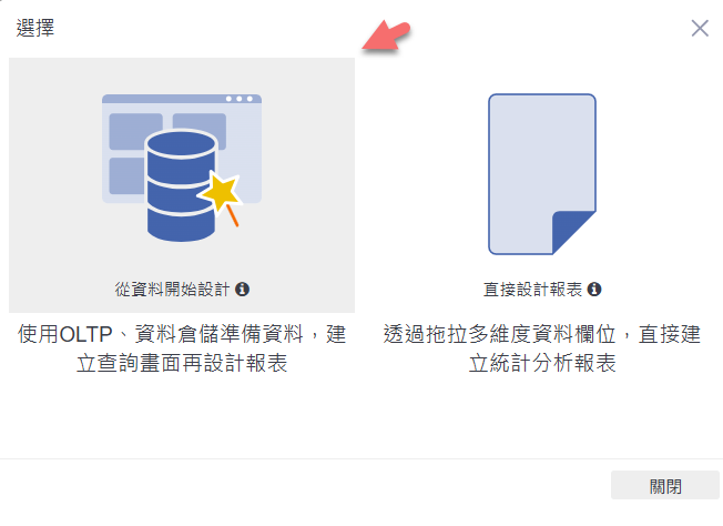 在出現的設計選擇畫面中,點選左側「從資料開始設計」。