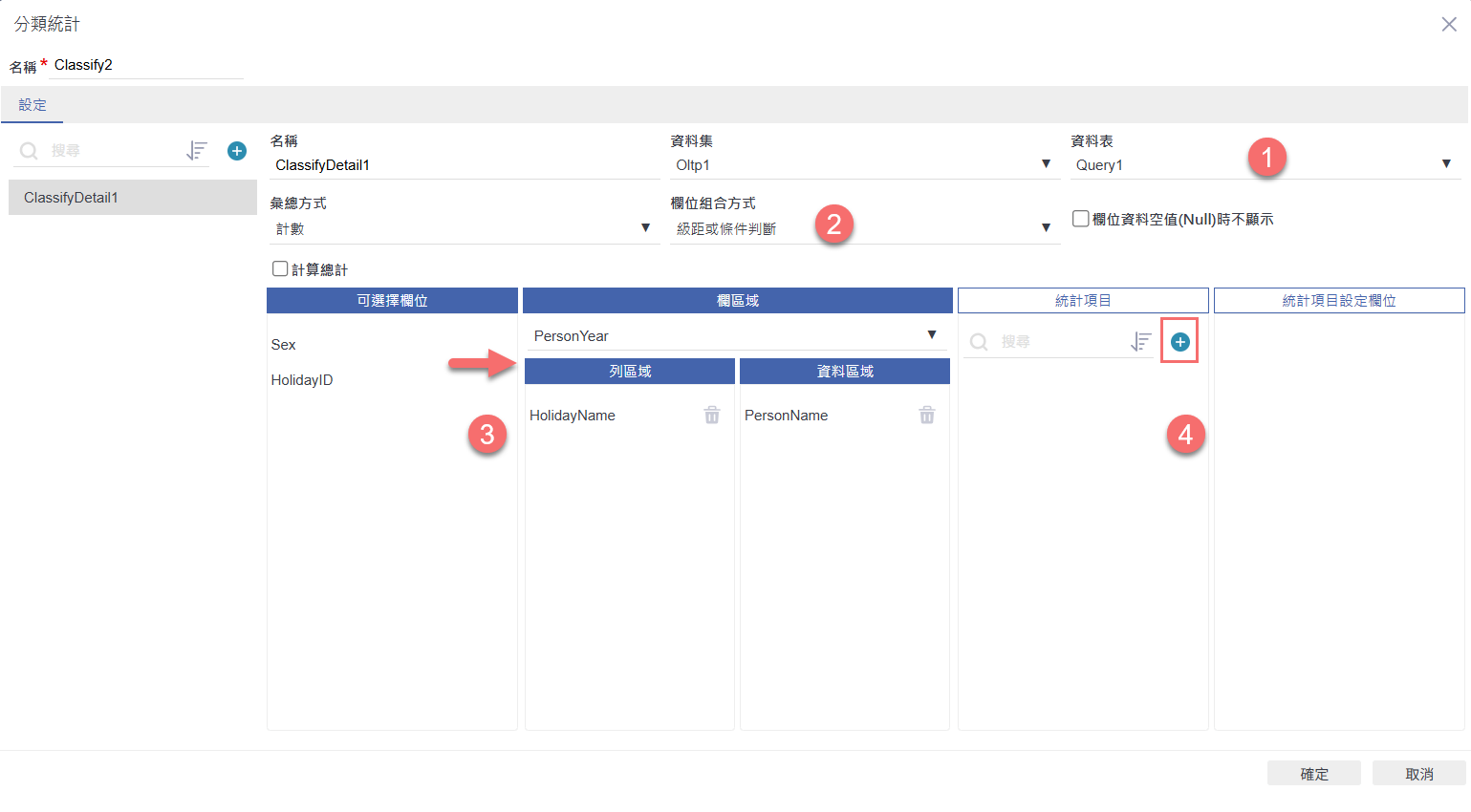 建立分類統計的基本設定與欄位配置:
