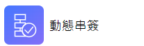 點選到企業流程,可以依照需要將左邊關卡拖拉到右邊流程中,「動態串簽」功能用於線上表單簽核,且此簽核可依資料內容自動帶入多個簽核對象進行連續簽核,當依序簽核完成後,自動到下一流程。
