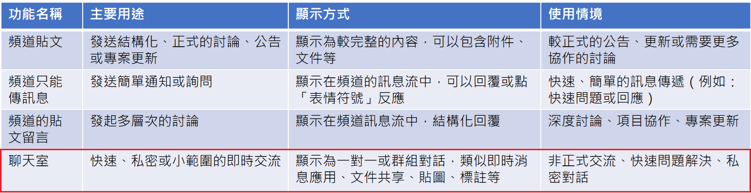 系統透過指的Teams 帳號發送訊息到一對一聊天室或群組聊天室