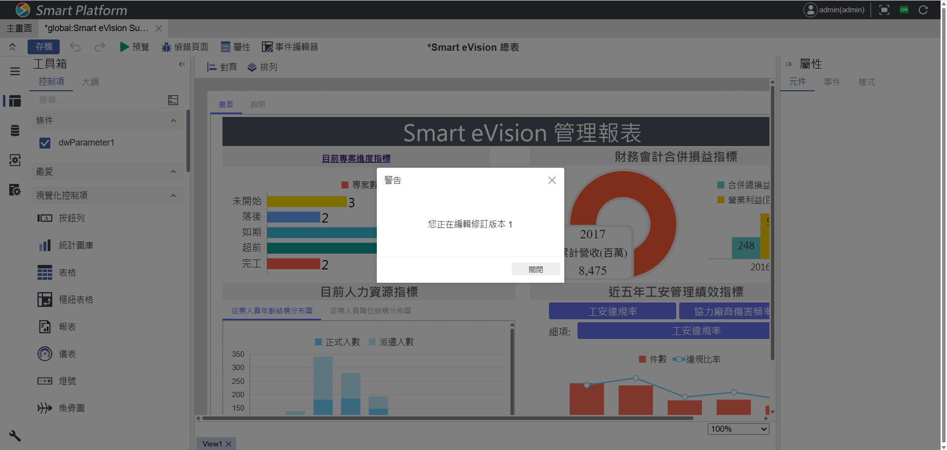 進入修訂版本進行編輯:當使用者選擇「切換修訂版本」後,即可進入該版本的編輯畫面。此時系統會跳出提示視窗,提醒目前正在編輯的是特定版本(例如:修訂版本 1),確保使用者清楚辨識正在作業的版本內容,避免誤編或覆蓋其他版本資料。此設計有助於版本管理更加清晰有序。