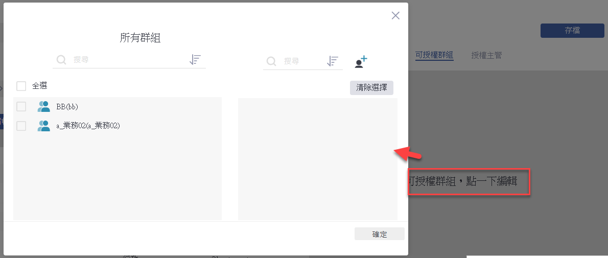 點擊編輯區域,系統會顯示所有可選擇的群組列表。