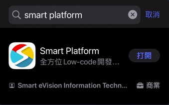 打開 iOS 裝置上的 App Store,搜尋「Smart Platform」,會看到如下圖的圖示,請點選下載。