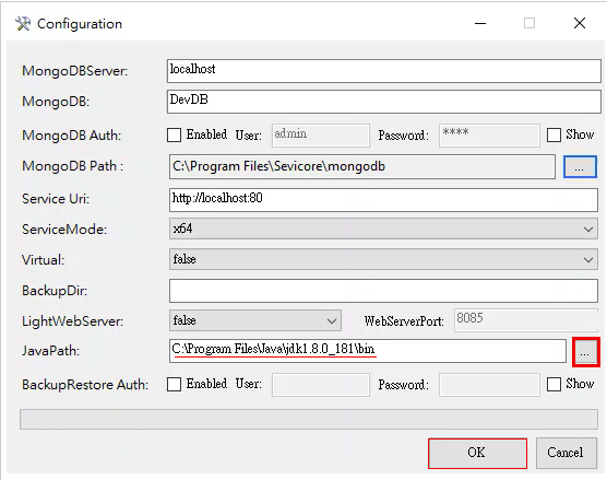 在 JavaPath 欄位中,設定 JDK 路徑,例如:C:\Program Files\Java\你的JDK版本\bin。