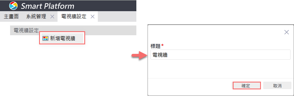 電視牆設定位於 Smart Platform 的系統管理中,路徑如下: